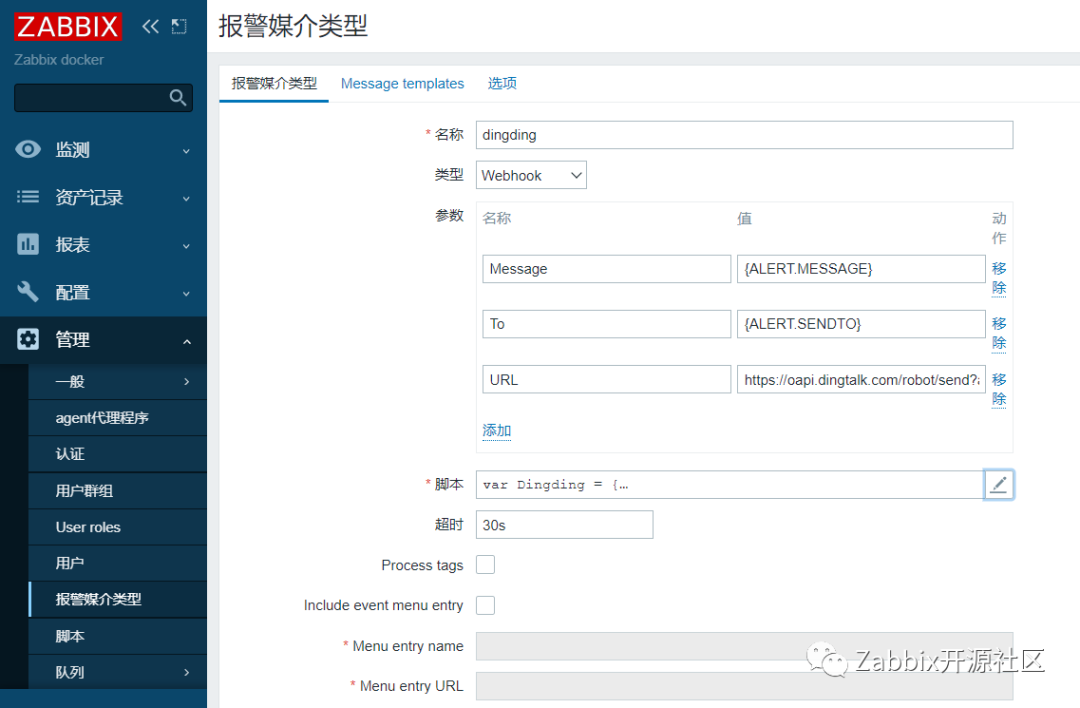 Zabbix从4.4开始支持使用自定义的JavaScript代码来配置Webhook媒介类型实现故障报警通知,这又为用户提供了一种使用前端代码来进行报警通知的方式。相比于在后端配置告警脚本的好处是代码可维护性更强,支持媒介类型的导入导出,省去了后端调试代码的步骤,使Zabbix更加的开箱即用。本文介绍Webhook的媒介类型是怎么配置的。