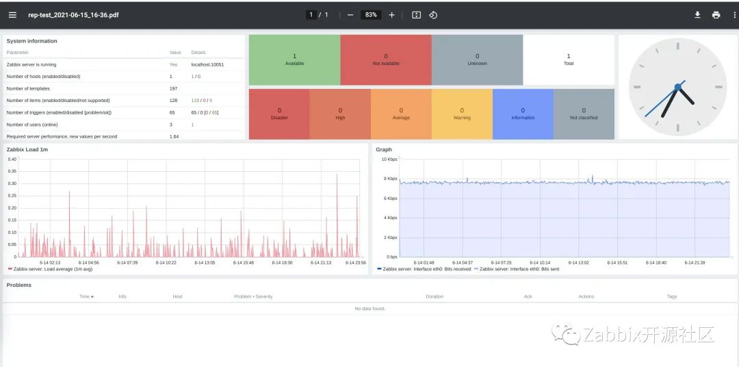 Zabbix 5.4版本发布,提供了很多新特性,自动导出PDF巡检报告是一大重点功能。此功能可按Dashboard维度,定时自动导出PDF报告,并通过邮件发送。