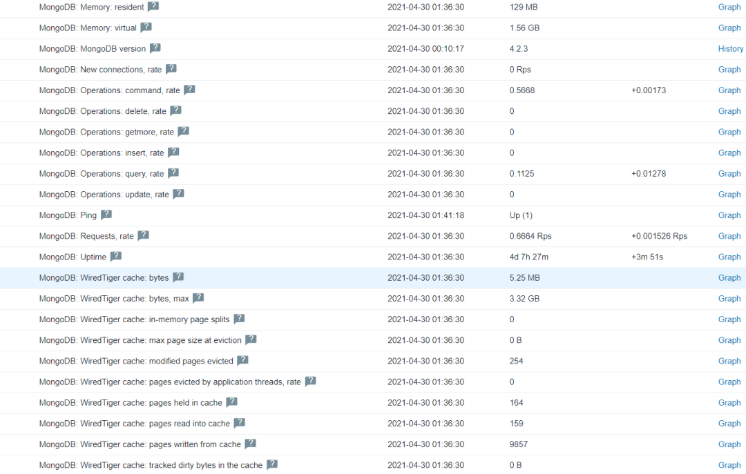 关于此监控项依赖项的详细信息可查看官网有详细说明:https://docs.mongodb.com/manual/reference/command/serverStatus/#dbcmd.serverStatus