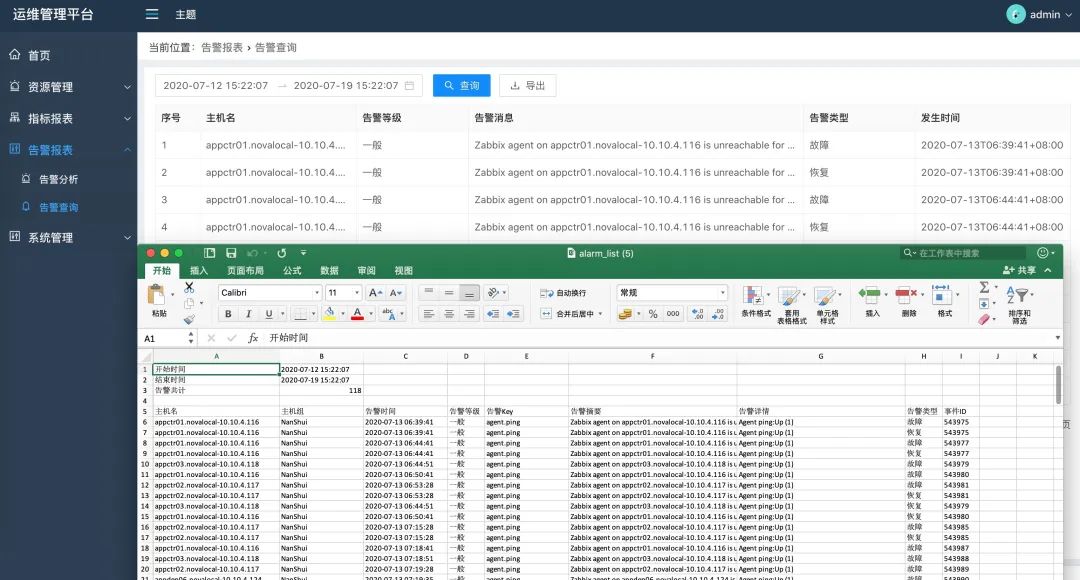 导出特定时间段内 Zabbix 的告警消息到 xlsx