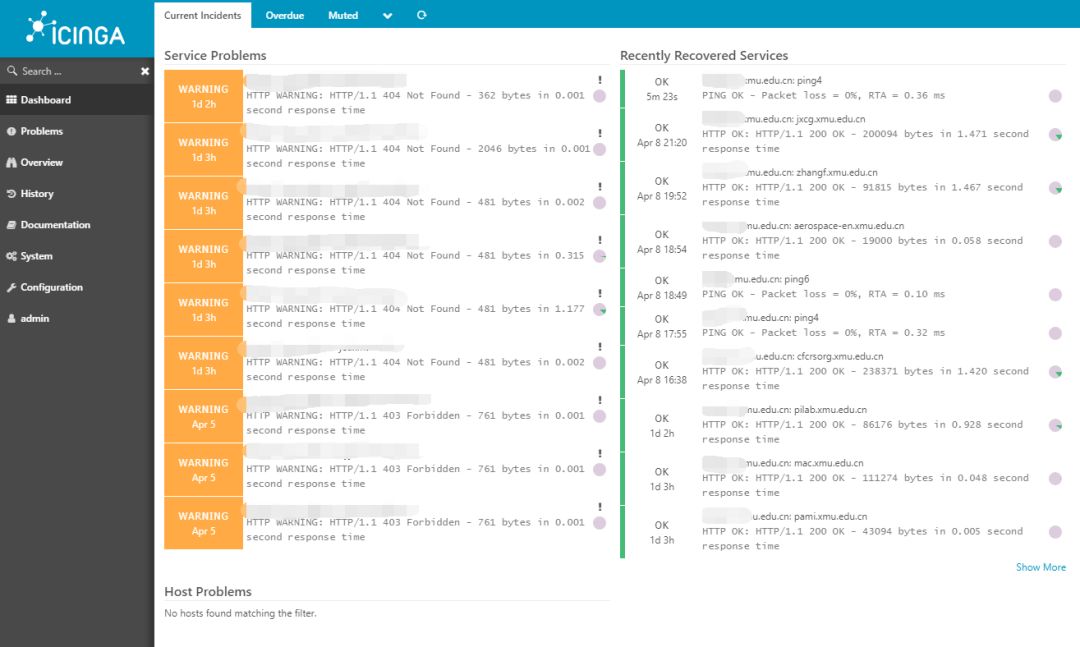 对应第一个需求,由于Nagios太老了,所以换Zabbix。Zabbix功能非常强大,GUI、API配置,然而我还是忘不了Nagios的文本配置对于程序化生成配置文件的友好,所以也引入了Icinga,2套类似的系统并行。