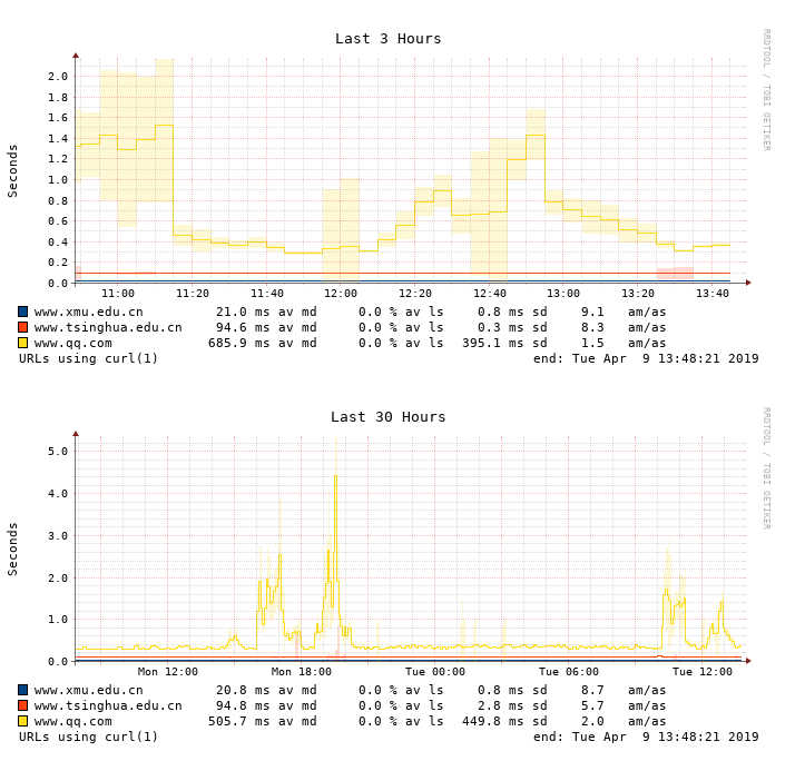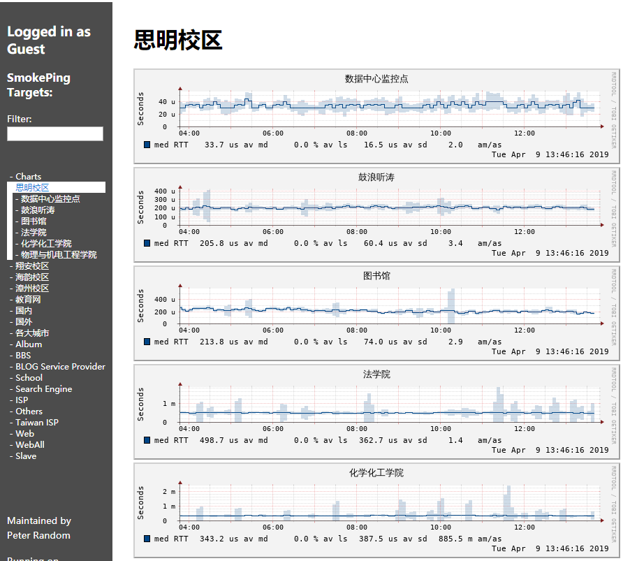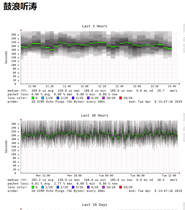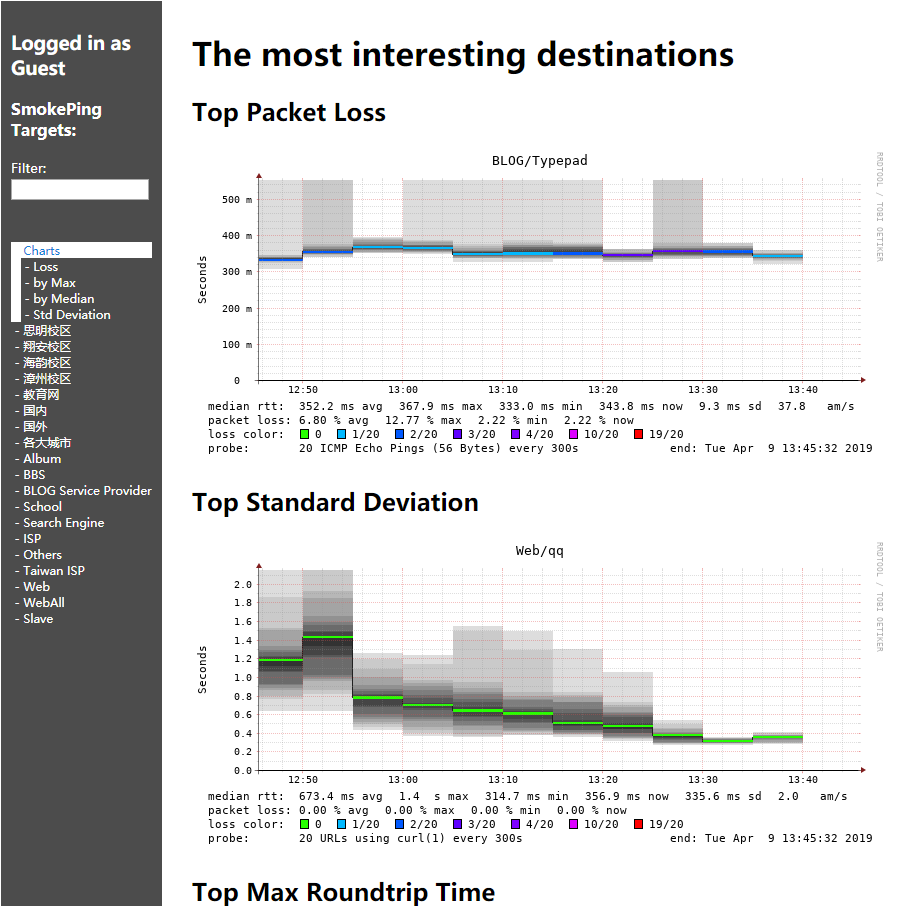 测量延迟使用SmokePing,SmokePing使用Perl和RRD文件,技术上稍微落后,但是配置异常简单,能达到目的也行。当然最近某网也出了很帅的“此版本与60寸以上大屏幕更配哦”的基于现网流量时延分析升级版,SmokePing可以认为是主动的定向的测量。
