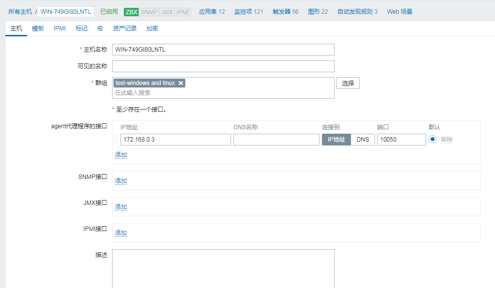 这里的windows server2012环境使用的是esxi虚拟机,由于上公网的ip不够用,这里我做了nat,但esxi不支持nat网络,所以我使用iptables在Zabbix server上实现了端口转发以及共享上网