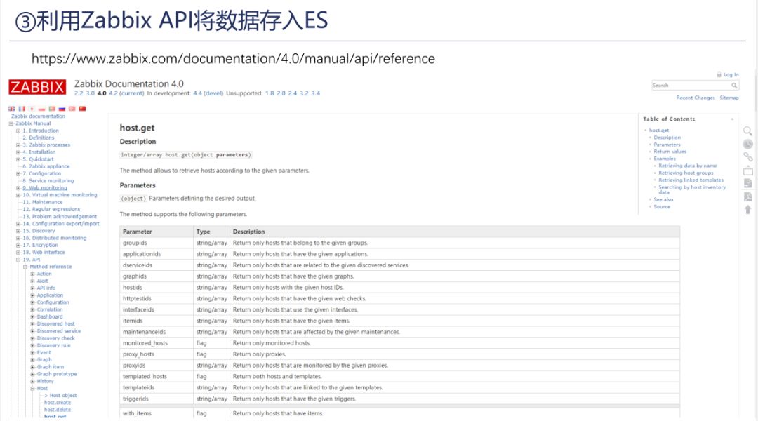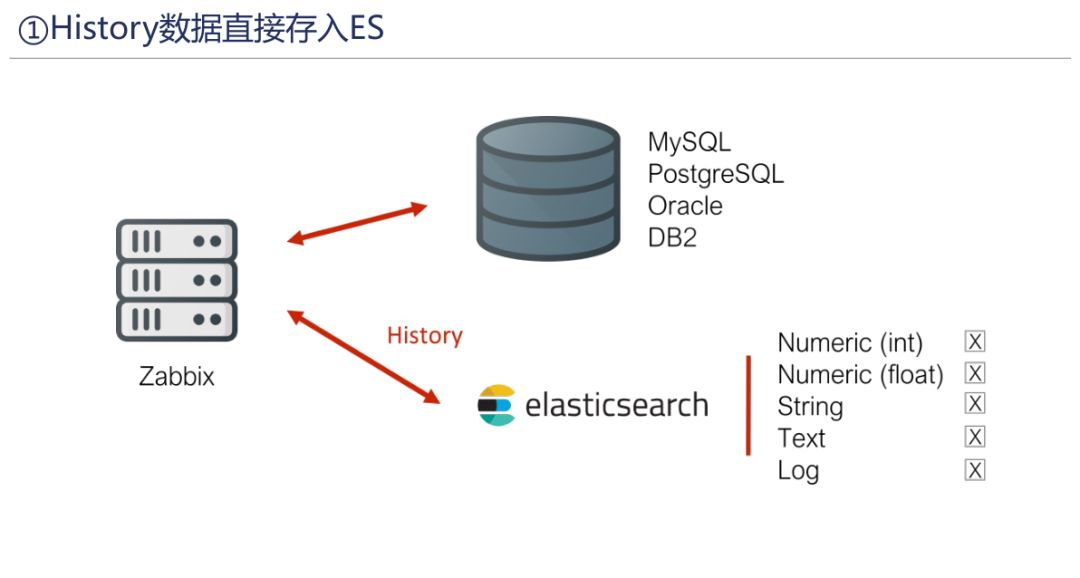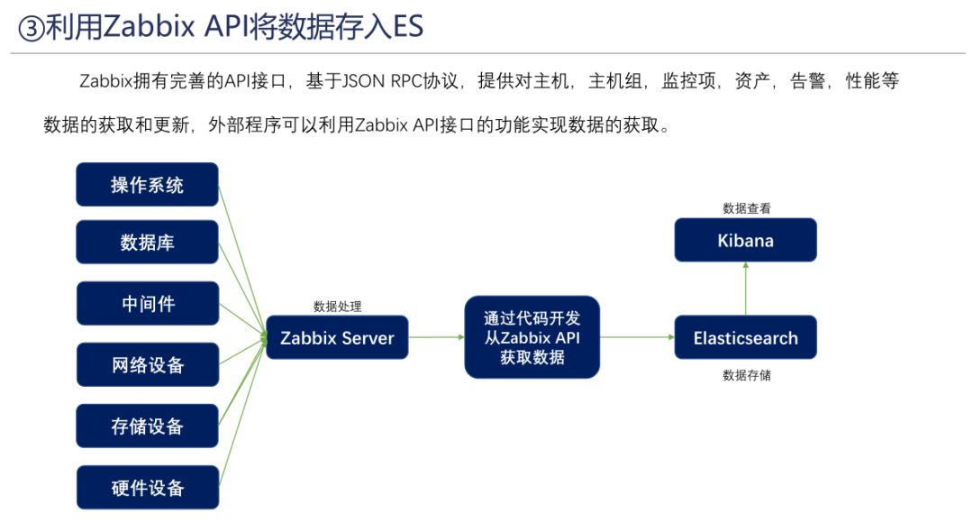 从Zabbix后台数据库中直接抽取数据并通过开发的方式将数据保存到Elasticsearch中,但不推荐使用此方式,直接操作后台数据库,风险较高,请谨慎操作。
