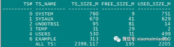 69 ROUND(SUM(T.ALL_BYTES) / 1024 / 1024, 3) TS_SIZE_M,