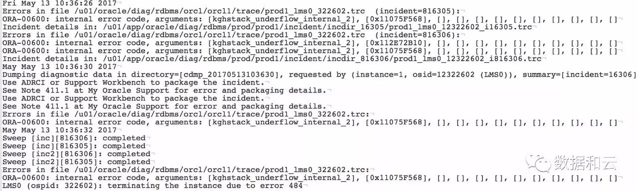 以下是一次错误出现的日志,最终出现错误的LMS进程终止了实例: