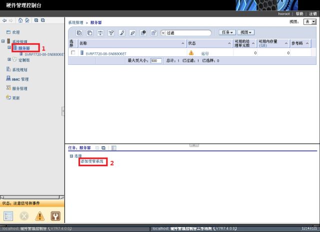 BM HMC和小型机的HMC管理口连通后,通过登录IBM HMC的管理界面,默认用户名密码为hscroot/abc123, 点击添加主机,如下图: