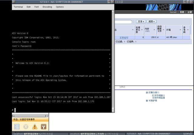 通过ssh登录IBM HMC, 执行命令,效果如下: