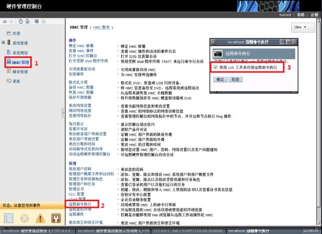 为了能够远程连上IBM HMC执行管理命令,需要开启IBM HMC的ssh功能,开启方法如下: