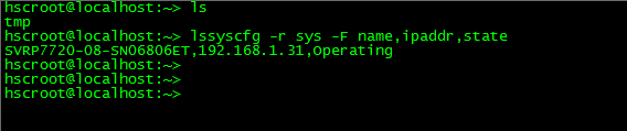 Executed script: lssyscfg -r -sys -F name,ipaddr,state