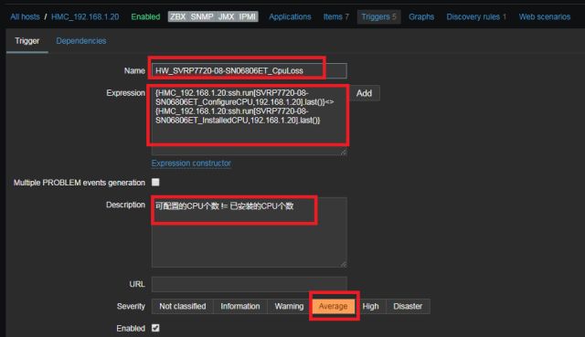 5.3.3 添加触发器-被管小机安装CPU不等于可配置CPU数量告警
