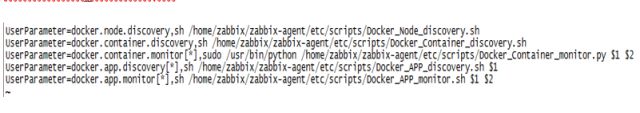 以下是配置步骤和相关脚本说明,做完以下配置后,新上线的Docker宿主机上线时自动化部署Zabbix Agent和相关脚本,即可自动完成前面描述的Docker监控全自动注册流程,并根据容器的变化自动调整监控,整个过程0手工操作。