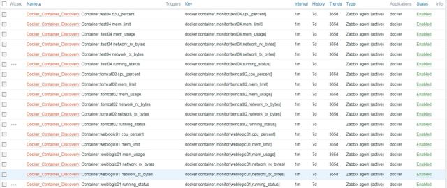 自动获取Docker Container注册到Zabbix中Docker宿主机监控模板,完成对容器的监控。