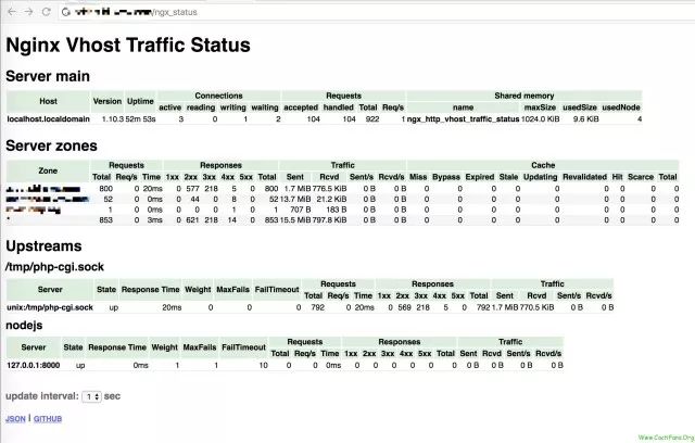 nginx作为一款强大的web服务器已被广泛使用,结合nginx-module-vts插件可以将nginx的状态通过http方式输出,可使用这种方式来监控nginx的运行状态,配置好插件之后,访问插件页面可以看到如下状态页面