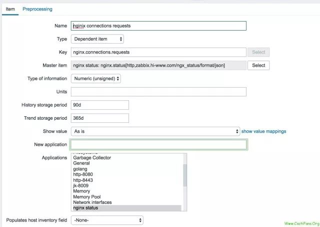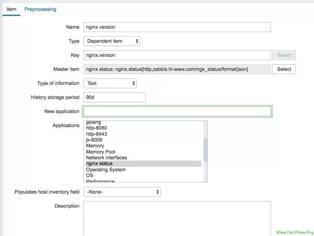 下面结合一个监控nginx状态的实际应用来介绍一下item预处理功能及Dependent item的使用.