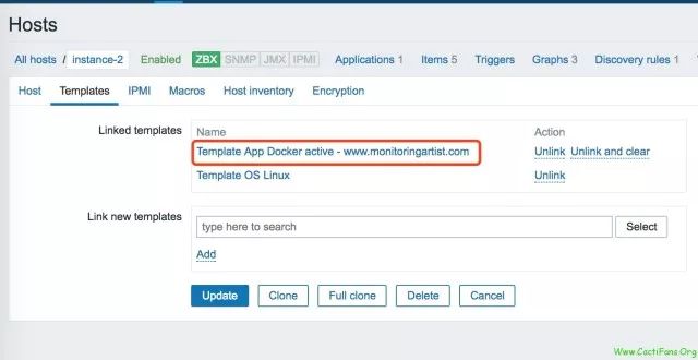 这里的机器名为使用hostname命令查到的机器名。关联Linux OS 模版和Zabbix-Template-App-Docker-active