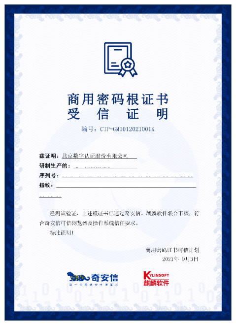 麒麟软件CA通过根证书认证 助力国家信息安全的保障