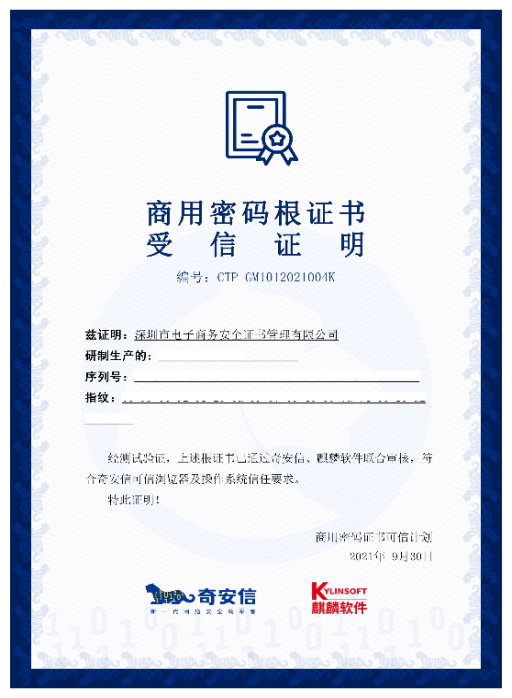 日前,北京数字认证股份有限公司、上海市数字证书认证中心有限公司、数安时代科技股份有限公司和深圳市电子商务安全证书管理有限公司先后向《商用密码证书可信计划》提交证书入根申请,并均已通过麒麟软件、奇安信联合认证,所提交的根证书将按计划预置于奇安信可信浏览器及银河麒麟操作系统中。这标志着我国主流CA厂商和奇安信、麒麟软件将携手共同推动国产密码算法的应用,助力基于国产密码数字证书的信创环境安全访问体系持续完善,国密算法普及和发展工作将得到进一步提速。”