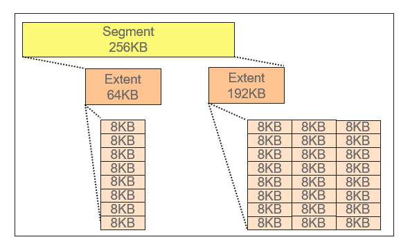 Group | Extent size | Extent page count | Extent count range | Total page count | Total size |