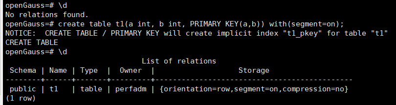 create table t1(a int, b int, PRIMARY KEY(a,b)) with(segment=on);