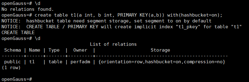 2. 指定参数hashbucket=on,创建段页式hashbucket表