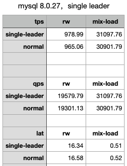 MySQL 8.0.27刚发布,我比较关注在MGR方面做了哪些改进提升。注意到有个新特性是Single Consensus Leader,大意是在single primary模式下,把single-leader标记打开,可使得MGR性能会更好些,以及在个别节点故障时能更快恢复。我简单测试了下,性能是略有提升1%左右,机器不明显,可能是因为我测试机配置太差的缘故吧。
