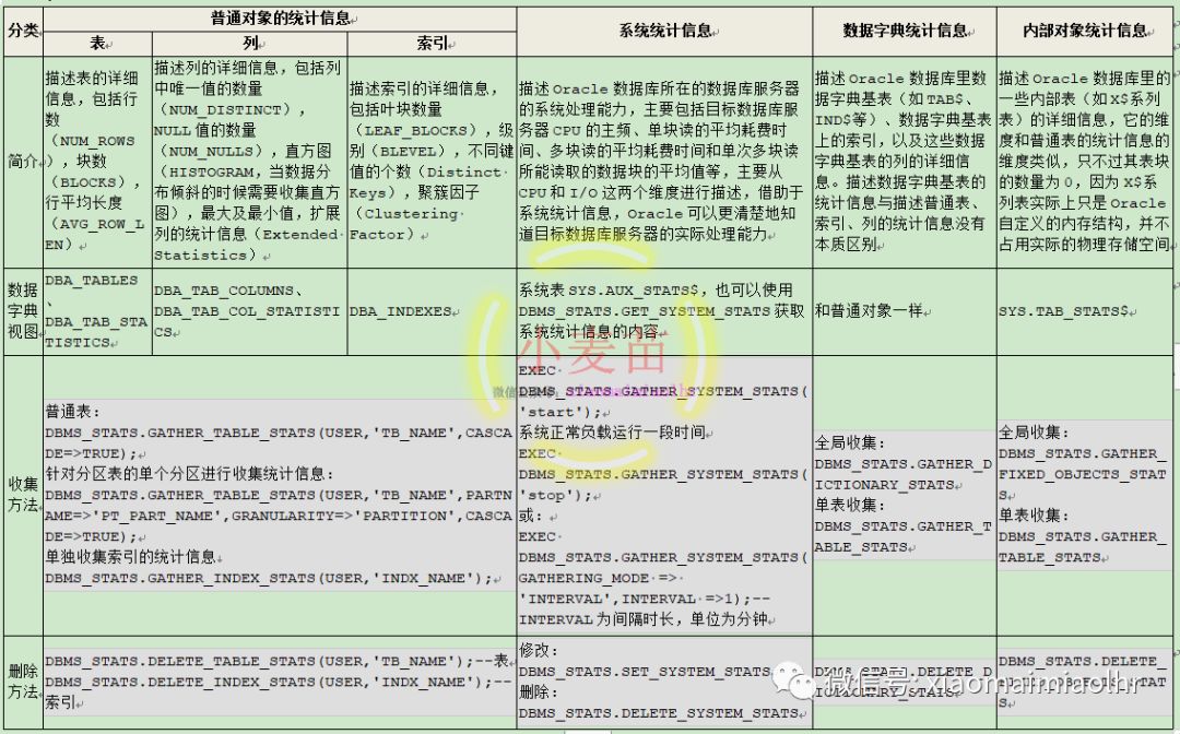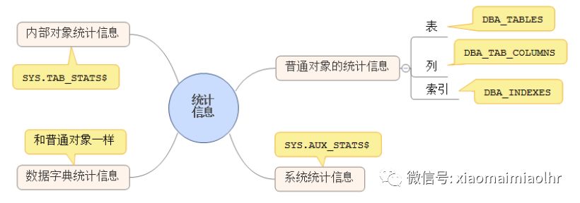 统计信息主要包括6种类型,其中表、列和索引的统计信息也可以统称为普通对象的统计信息,如下所示: