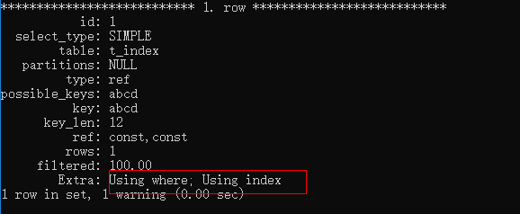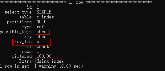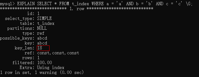 EXPLAIN SELECT * FROM t_index WHERE a = 'a' AND b = 'b' AND c = 'c' \G;