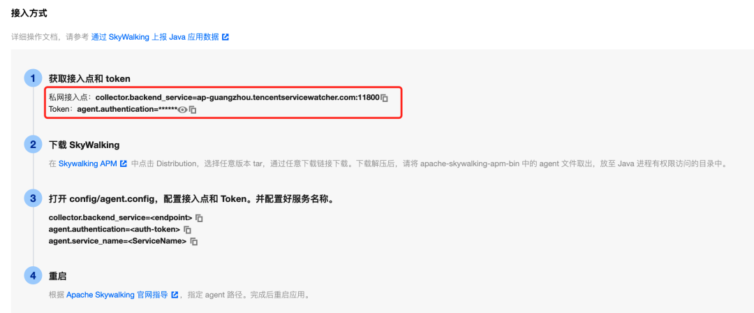 首先拿到腾讯云TSW界面的接入token和接入内网地址(如下图所示):