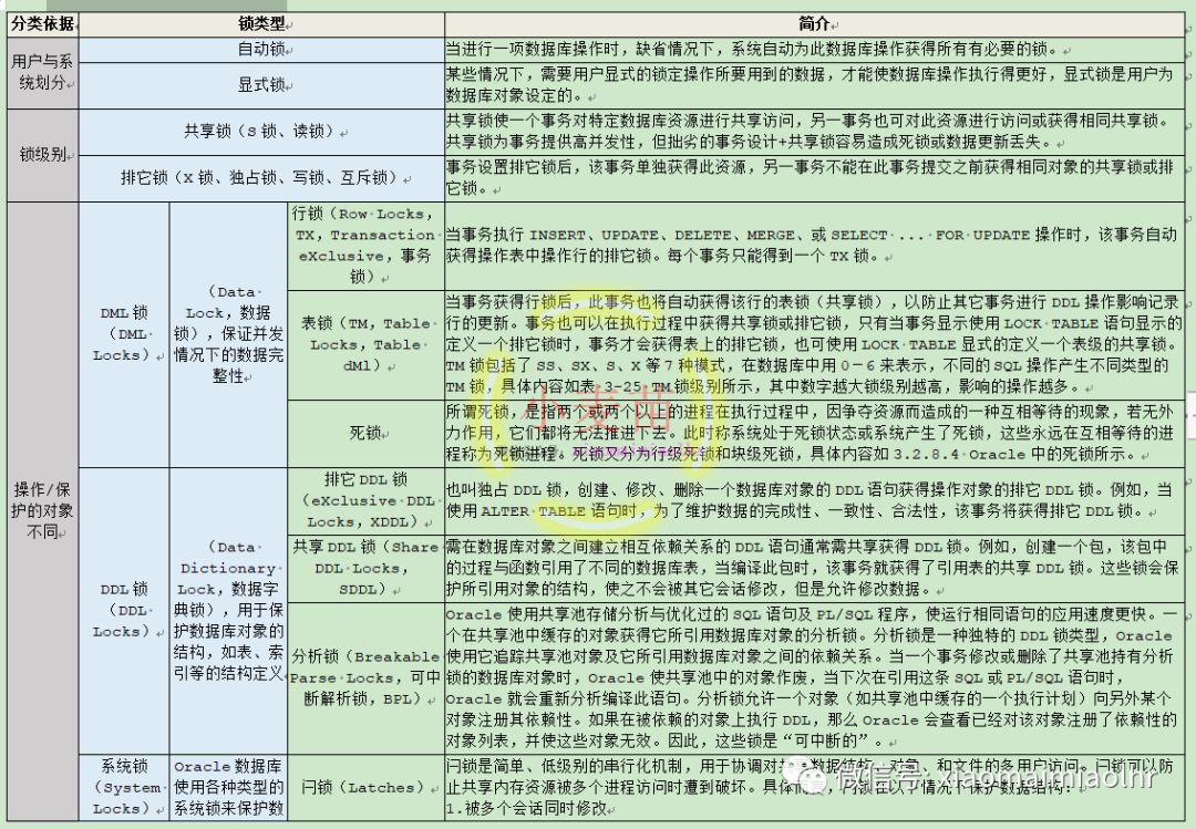 图 3-15 Oracle的锁分类