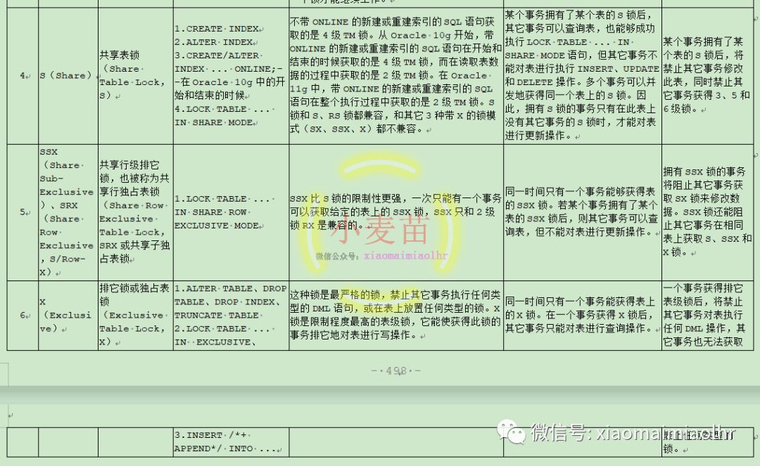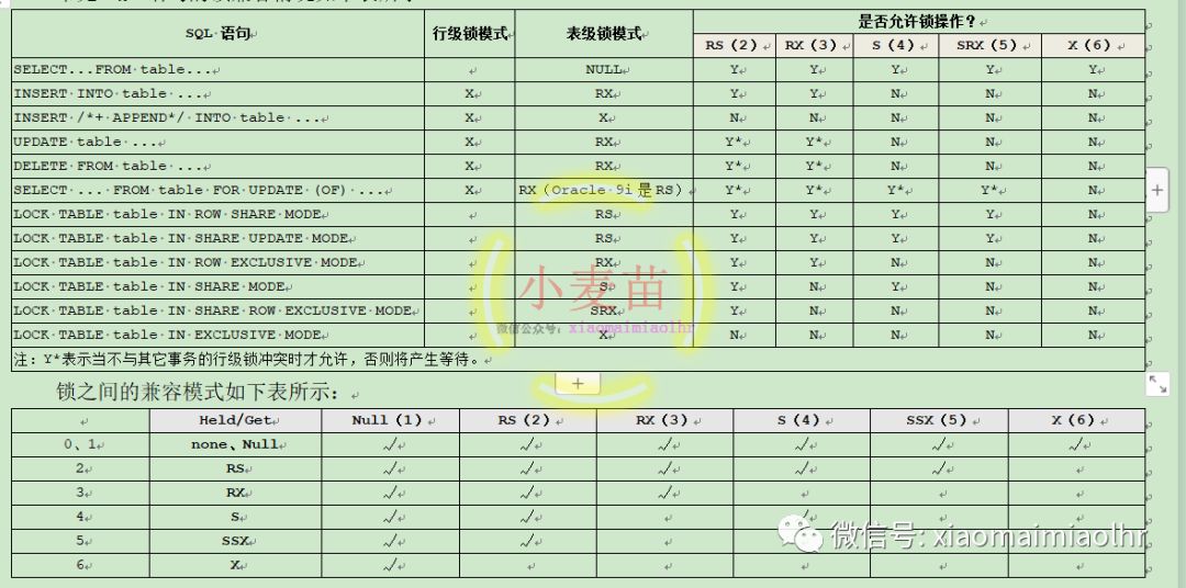 常见SQL语句的锁兼容情况如下表所示: