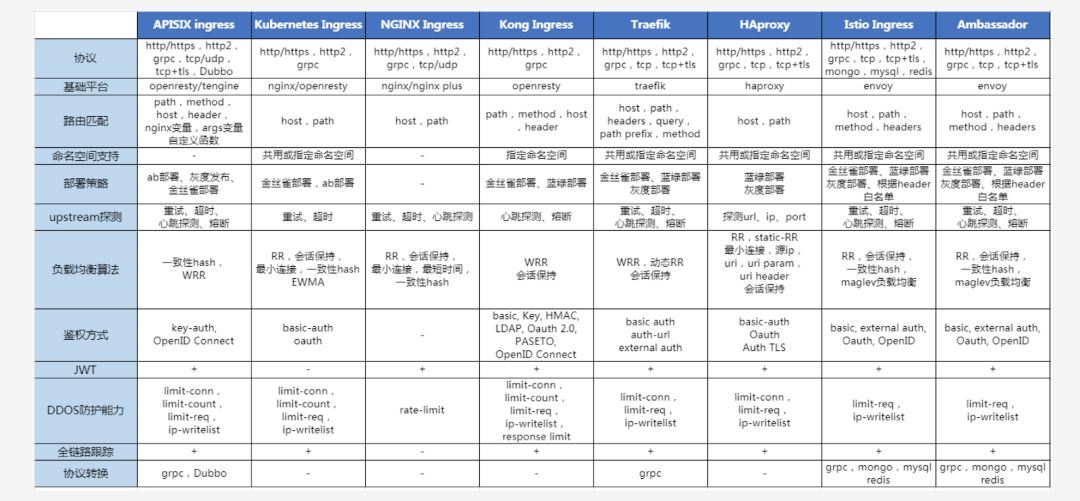 各类 Ingress 横向对比