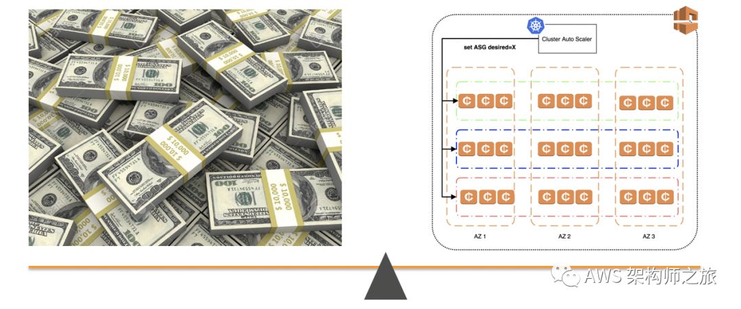 云服务的成本的第一个原则:按使用付费,即开即用,用多少付多少;按资源类型来分,大概分为按使用时间计费比如 EC2 实例的按秒计费,按使用量(流量,存储大小等)以及按调用次数比如 Lambda 函数的调用次数;这是云服务最自然的一种用法,用户不需要承诺任何长期的比如包月包年等协议,就可获得各种优质的云服务,那这种方式是不是代表成本最高呢?答案是否定的,比如竞价实例就是优化客户这样的计算需求,业务需求长期来看不明确,无法承诺固定的使用期限,但成本又比较敏感,从我们的客户实践来看,用好竞价实例整体成本降低 70% 以上的案例比比皆是,尤其是容器,数据分析,持续集成和 HPC 等场景;另外,很多客户采用越来越多的无服务器云服务,比如 AWS Lambda,Athena,Fargate 等等,虽然客户自己的服务都已经部署上线,但只要没有用户调用,资源使用可以缩容到零,无服务器架构真正帮到客户节约了大量的资源浪费成本,做到按真实使用付费;