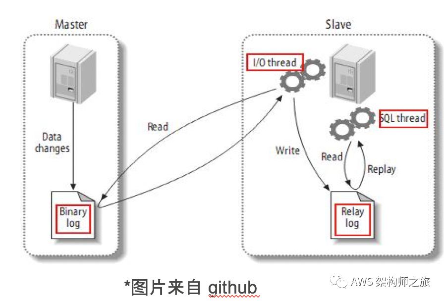 对于复制技术,我们最熟悉的应该是关系数据的主从复制,比如 MySQL 基于二进制日志的主从复制基本架构如下,(1)从库一个线程读取主库的二进制日志,在本地存储上连续写入二进制日志副本,保存在 Relay 日志中(2)另外一个线程,依次读取日志,并重放 Relay日志中的事务到本地的副本中;底层依靠数据库日志,实现日志数据的有序处理和去重(保障独立事务在日志中有且出现一次);另外,由于系统的故障,处理如果出现中断后重启,线程需要知道处理的进度,这里就有一个检查点(Checkpoint)的概念,避免再次处理已经完成的事务,确保事务的正确性。
