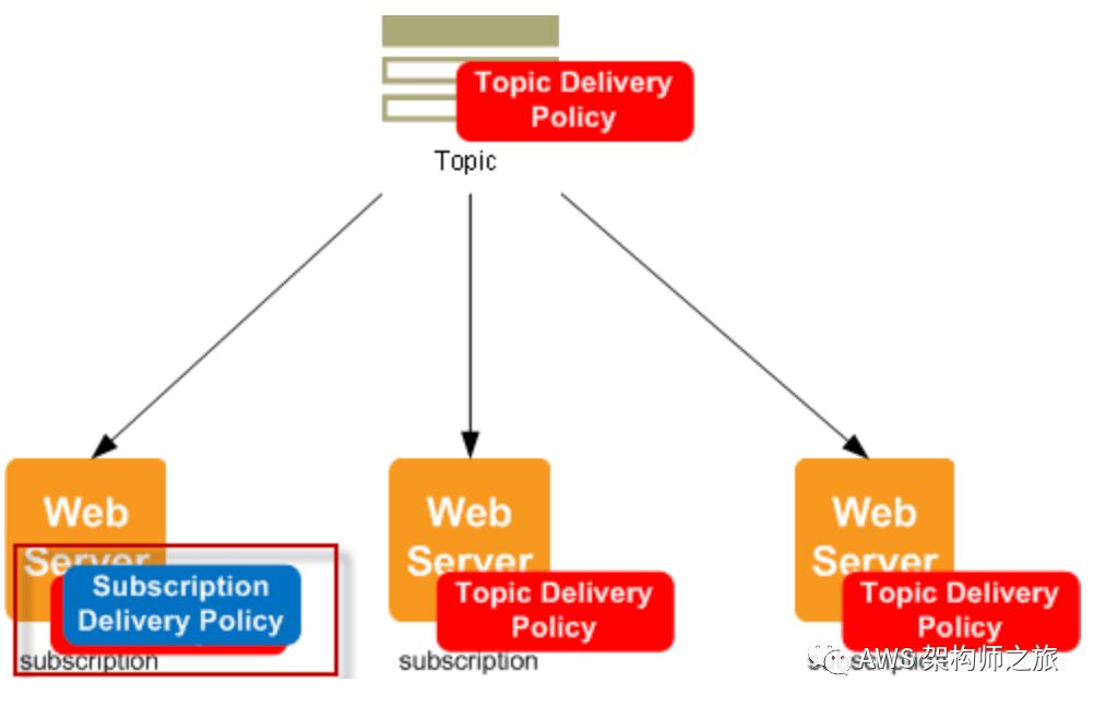 对于这样的订阅,Amazon SNS 支持自定义的重试策略(delivery policies)最多100次重试,消息在系统保留时间最多1个小时。