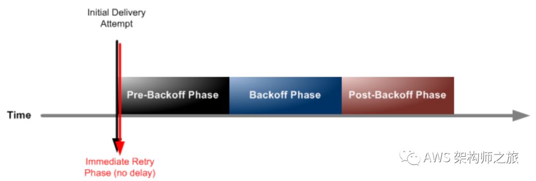 重试策略会横跨4个阶段(1)即刻重试(无延迟阶段)(2)前退避阶段,使用最短延迟重试指定重试次数(3)退避阶段,设置最短延迟和最长延迟时间,利用重试退避功能指定从最短延迟到最长延迟之间增长有多快(4)后退避阶段,使用最长延迟时间重试操作。默认重试3次,每个20秒一次。