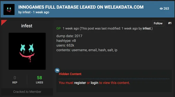 而该论坛, 从其名称可以看出,该论坛是自2019年以来最大的数据库泄漏和破解社区之一。