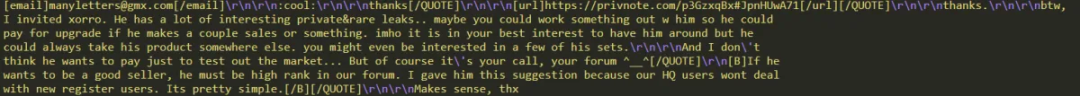 利字头上一把刀,哪里有利益,哪里就有竞争,黑产也是如此,尤其是交易平台所在的暗网论坛。下图是一个历史遗迹,WeLeakData论坛曾经跑到竞争对手的论坛上做广告。