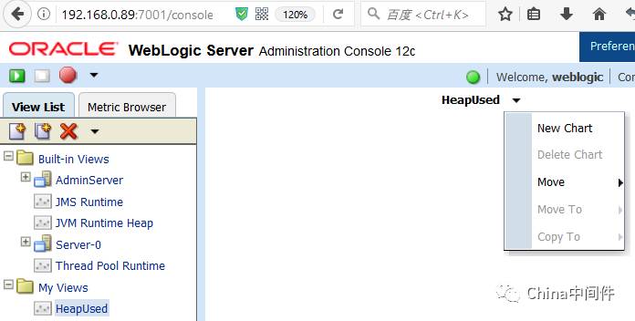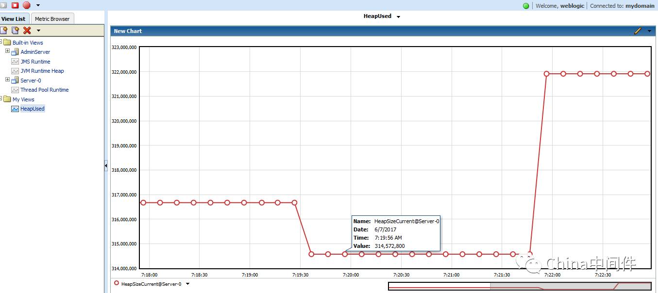 Oracle WebLogic 12c 中,Monitoring Dashboard是作为一个很重要的功能嵌入在产品中的,Domain创建好了以后就可以直接使用。作为WebLogic环境非常重要的一个监控工具入口,这里可以使用默认的监控项目,也可以自定义一些监控指标和图标进行分析。比较使用。对于没有特别安装其他监控软件的环境,这个功能給我们监控系统环境提供另外一种使用的方式。