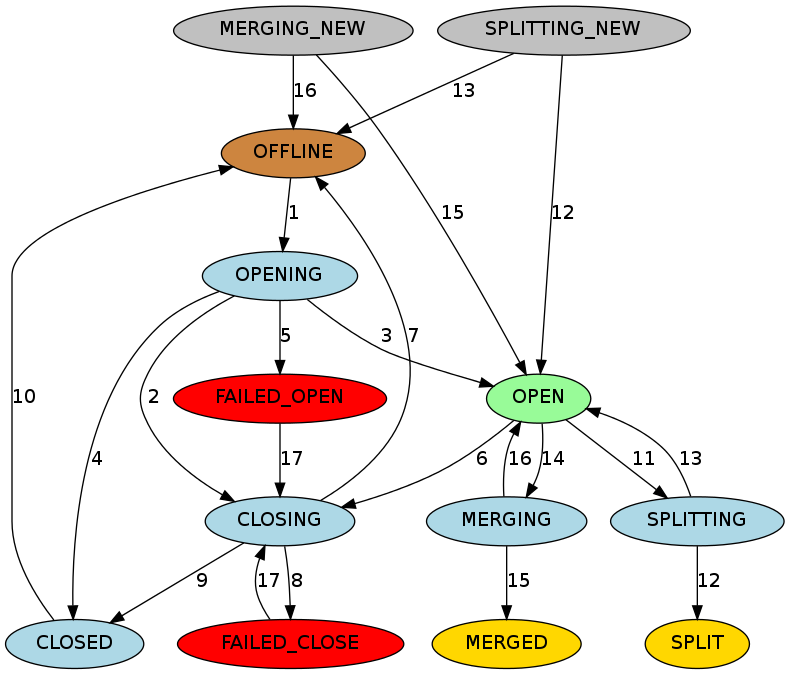 如果合并成功, 旧的region从merging变为merged,新的region从merging_new变为open。