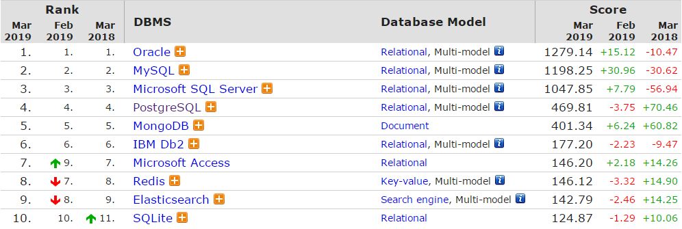 从最新的db-engines发布的全球数据库排名来看,MySQL评分有所增加,PostgreSQL评分有所降低。