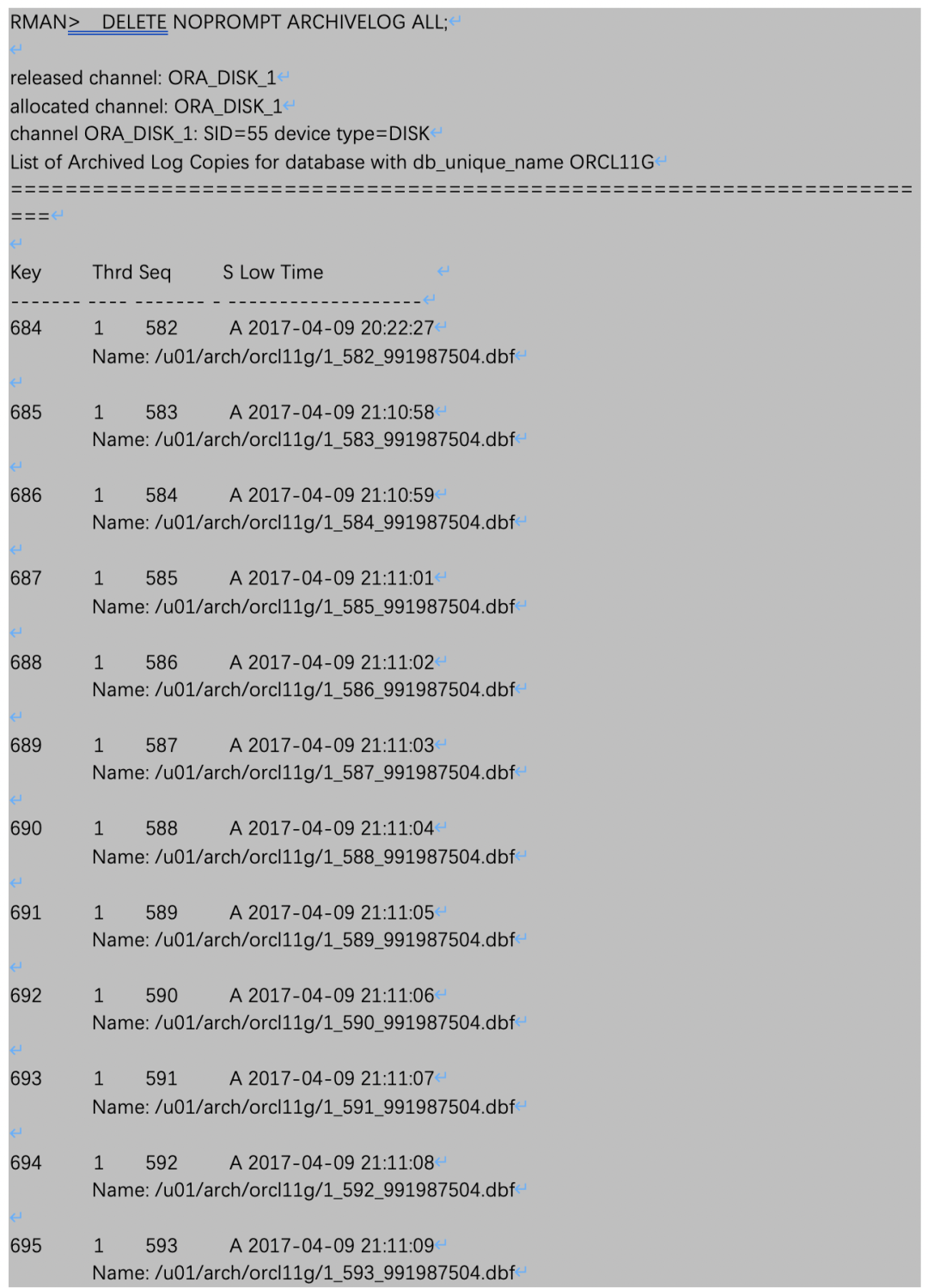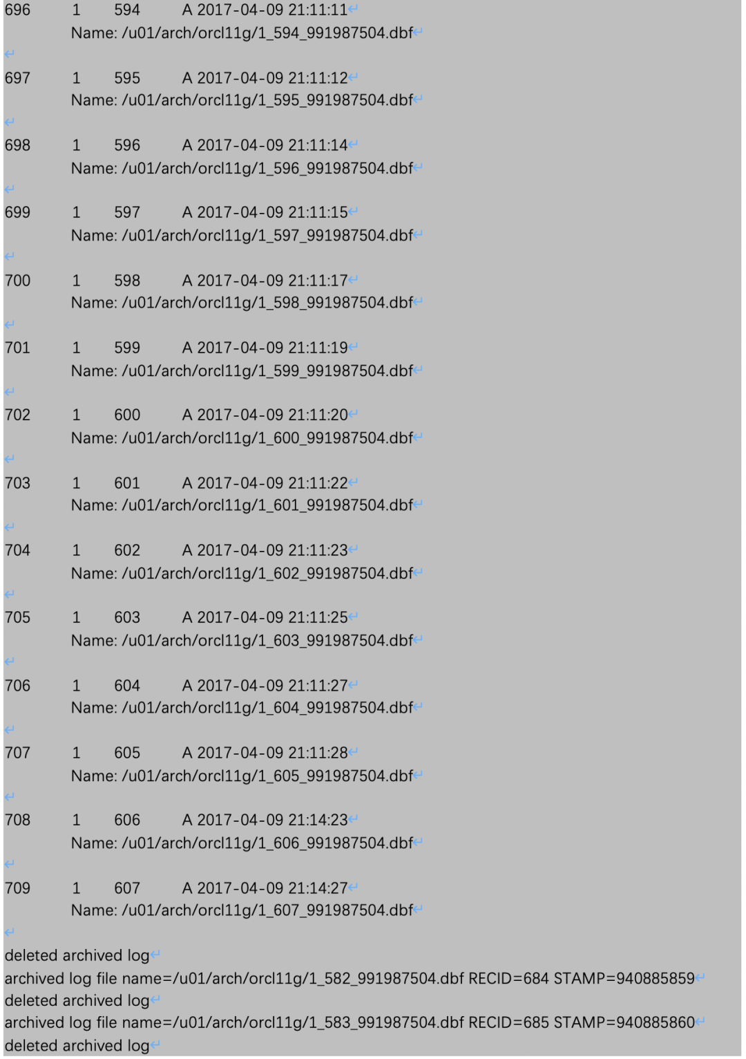 一般数据库都有定时备份和清理归档的脚本,我们也是强烈建议归档要rman备份后再删除。这样的话,哪怕归档已被删除,我们仍然可以从备份中恢复再注册回数据库。当然最好能保证抽取进程所需的归档不会删除。但也有很多不备份直接rman清理过去几天归档的情况(本文不讨论直接rm的情况)。