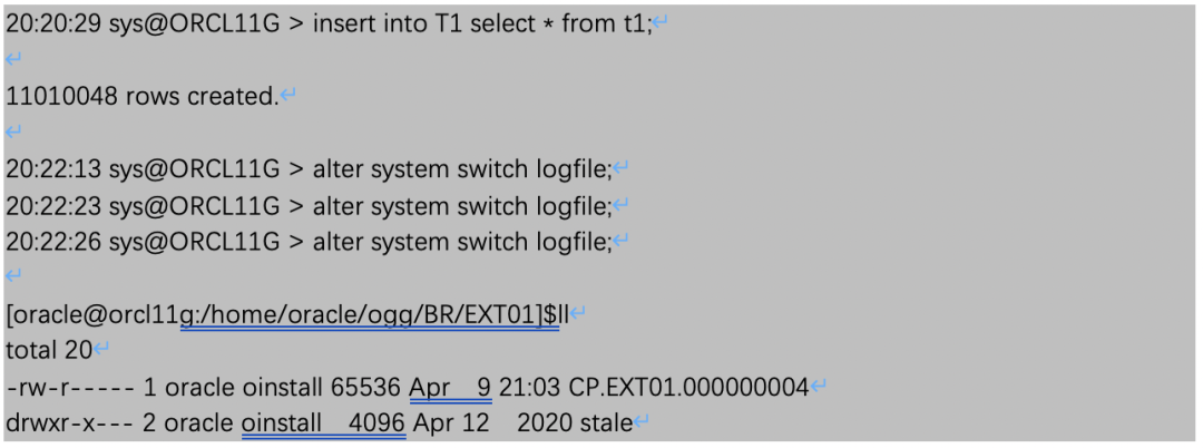 在每个检查点的时间点上,OGG会检查长事务,并将超过4小时的长事务的状态和数据写入到磁盘(如果没有达到4小时,则此事务不会被BR写入)。