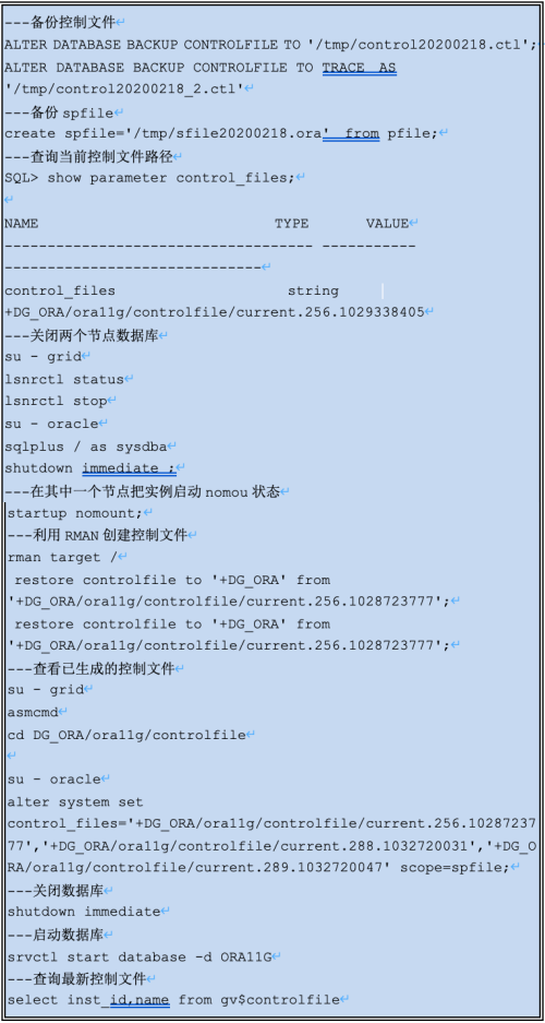 第二、涉及数据库重启时,备份控制文件到本地,当出现控制文件损坏,可以使用备份控制文件启动数据库。
