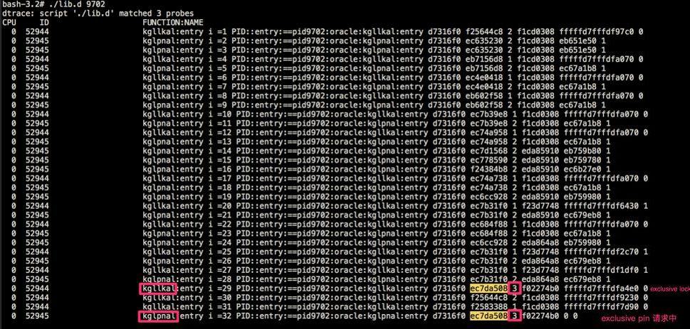 1、首先申请Exclusive模式的library cache lock并已得到且不释放,从x$kgllk查询出LOCK_MODE=3得以证明