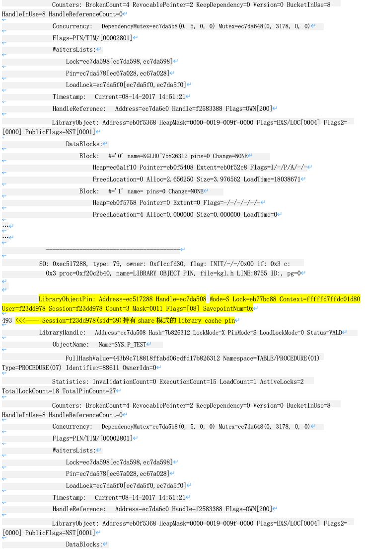 下面进行一个实验模拟,追踪library cache lock 及 pin的一个完整获取及释放的过程,再模拟出等待事件,以及利用systemstate dump对等待事件的分析。