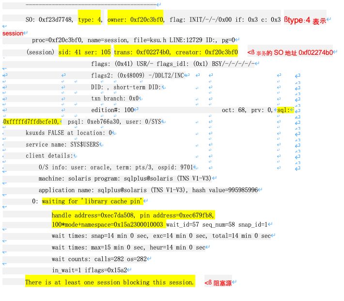 39持有NULL模式lock及share模式pin <—41持有Exclusive模式lock,等待Exclusive模式pin抓取systemstate dump进行深入分析