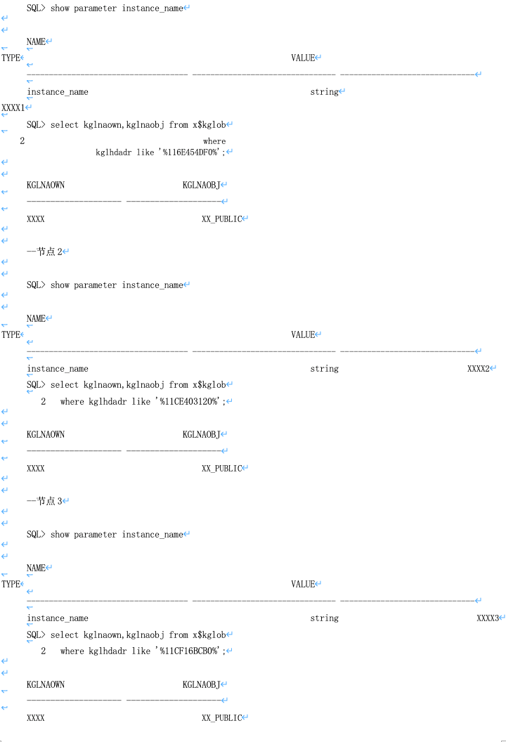 节点3查询x$kglob得出此对象地址为XXXX.XX_PUBLIC