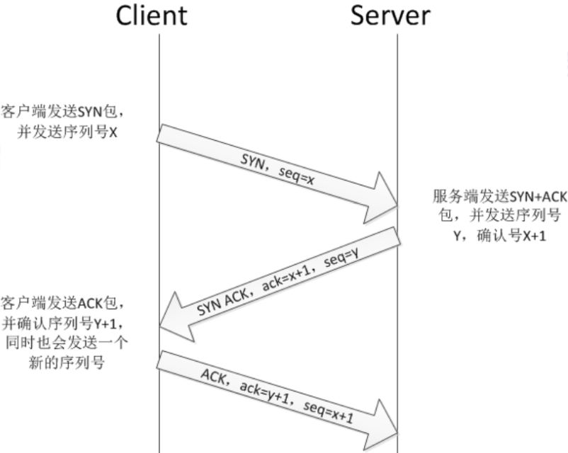 TCP在通信之前必须先与目标主机指定的服务端口建立连接,进行TCP三层握手,流程如下: