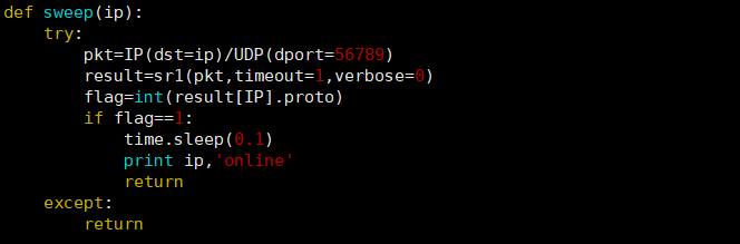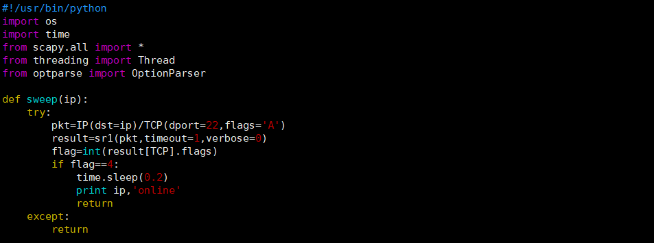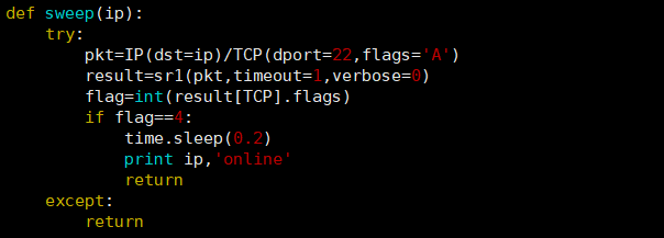 首先我们来定义一个sweep()函数,来向指定IP地址发送SYN ACK报文。